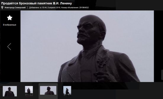«Продается памятник В.И. Ленину. Памятник представляет собой фигуру в полный рост, изготовленный из бронзы, высотой шесть метров», – говорится в сообщении.