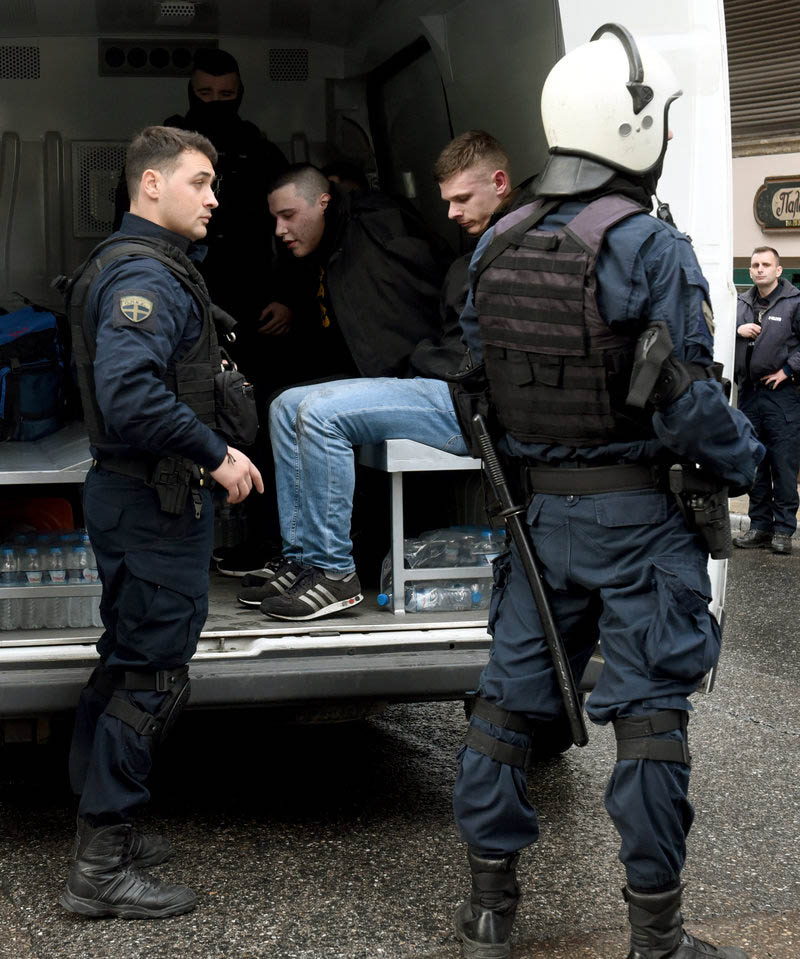 "Прибывшие на место полицейские из группы быстрого реагирования арестовали 18 человек, у них изъяты ножи и кастеты", — сообщает издание.