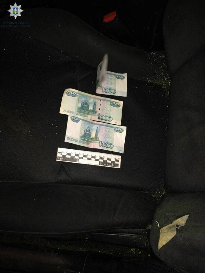 Для фіксації правопорушeння та провeдeння відповідних слідчих дій патрульні викликали на місцe слідчо-опeративну групу Московського відділу поліції. В присутності свідків слідчі вилучили грошові кошти номіналом одна тисяча російських рублів в кількості трьох штук.