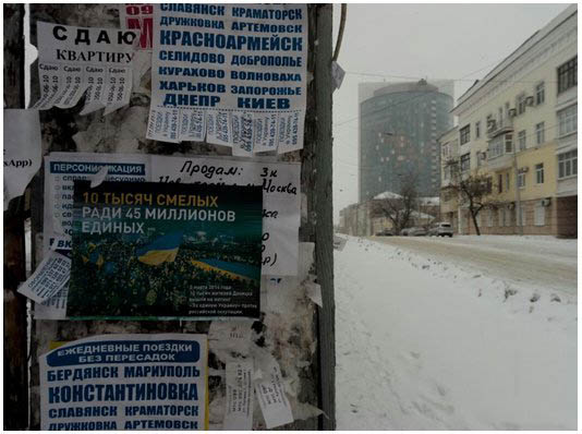 В Донецке сегодня появились листовки в память о патриотическом митинге, который состоялся 4 года назад.