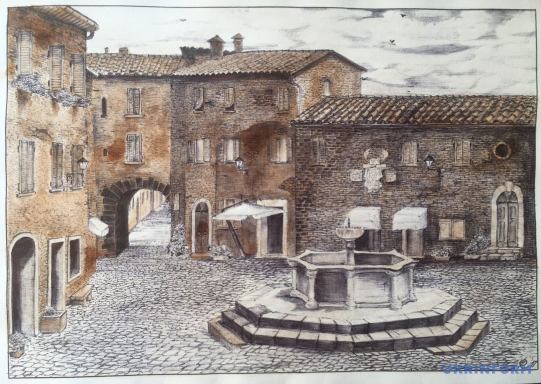 Сущенко за время заключения передал уже восемь рисунков. До этого он изобразил весенний пейзаж, вид на Париж и город Сен-Мало, швейцарский город Женеву и итальянскую Перуджу, а также пейзаж украинской местности - реки Рось.