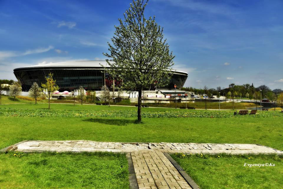 Так буквы ФК "Шахтер" в парке выглядели в мирном 2012 году. Позже к ним сделали дорожку из-за большого количества желающих сфотографироваться рядом.