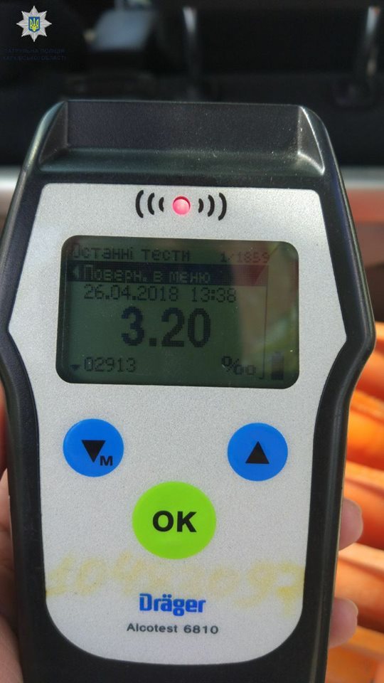 Во время общения с водителем инспекторы заметили у мужчины признаки алкогольного опьянения. Результат осмотра на приборе "Драгер" составил 3,20 промилле, что превышает допустимую норму (0,2 промилле) в 16 раз.