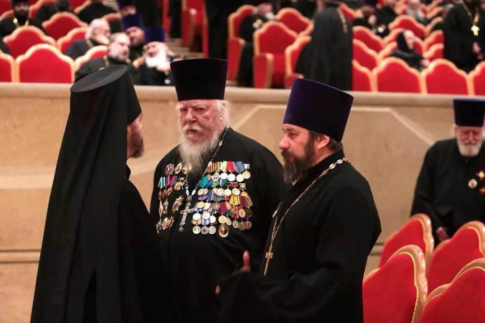 Он пояснил, что надел все свои награды по просьбе патриарха Кирилла. Протоиерей уточнил, что среди них есть, например, ордена Украинской православной церкви, а также почетные и ведомственные медали — в частности, медаль «200 лет МВД России», «За боевое содружество», две медали от Федеральной службы исполнения наказаний.