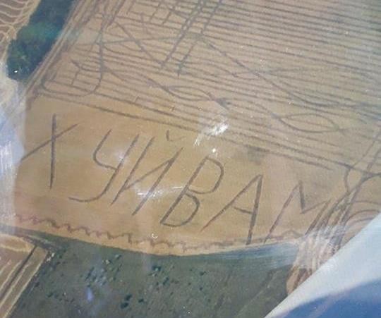 Хорошо различимая с воздуха нецензурная надпись появилась на поле близ села Войничево Захарьевского (б. Фрунзовского) района Одесской области, пишет Таймер.