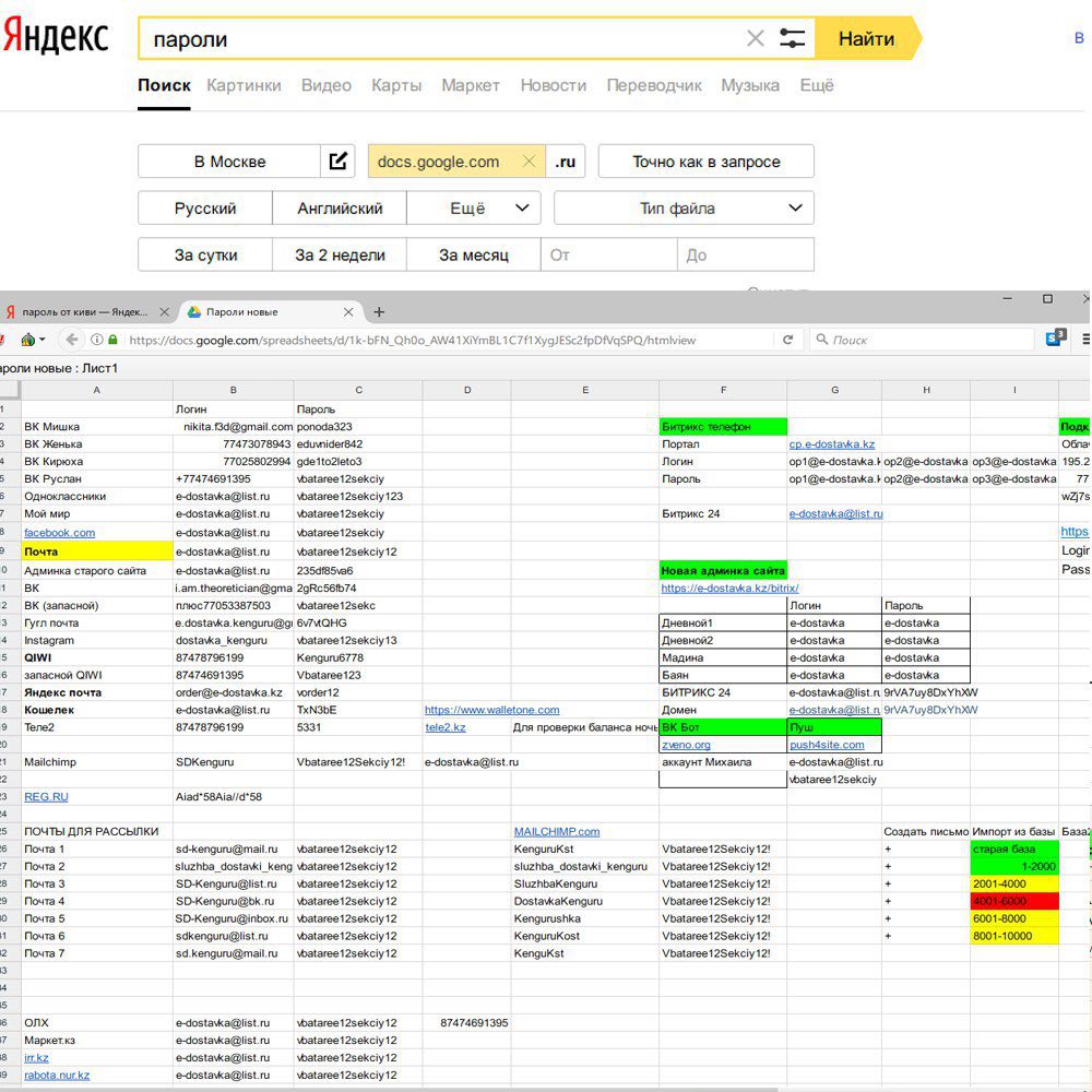 В выдачу поисковика "Яндекс" попали файлы пользователей сервиса Google Docs, содержащие их персональные данные, включая пароли и номера телефонов.