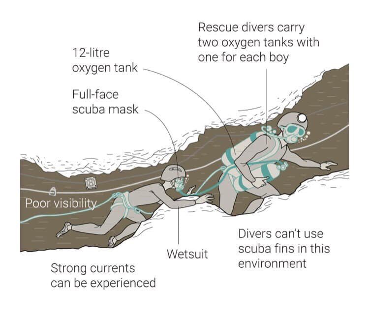 Когда юные футболисты после экскурсии решили покинуть пещеры, оказалось, что выход затоплен. Им пришлось провести девять дней в полнейшей темноте - без еды и теплых вещей, пока их не нашли спасатели. Они передали школьникам еду и воду, записки от родителей и баллоны с кислородом. Однако с освобождением ребят возникли сложности.