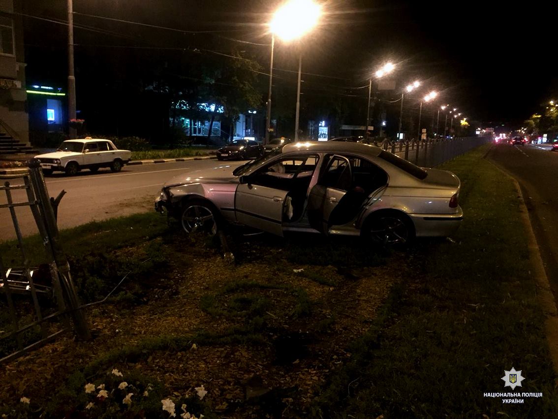 Водитель автомобиля «BMW» не справился с управлением и врезался в дорожное ограждение. ДТП произошло сегодня ночью на проспекте Науки в Харькове.