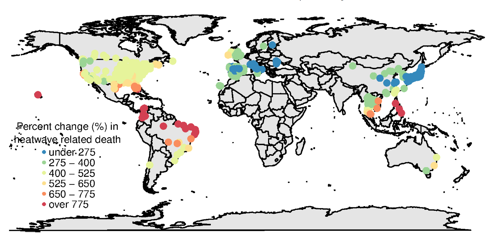 Группа ученых под руководством Юймина Го (Yuming Guo) из университета Монаша в Мельбурне построила математическую модель для того, чтобы оценить количество смертей от аномальной жары в период с 2031 по 2080 годы при различных сценариях изменения климата, адаптации к нему и изменения численности населения.