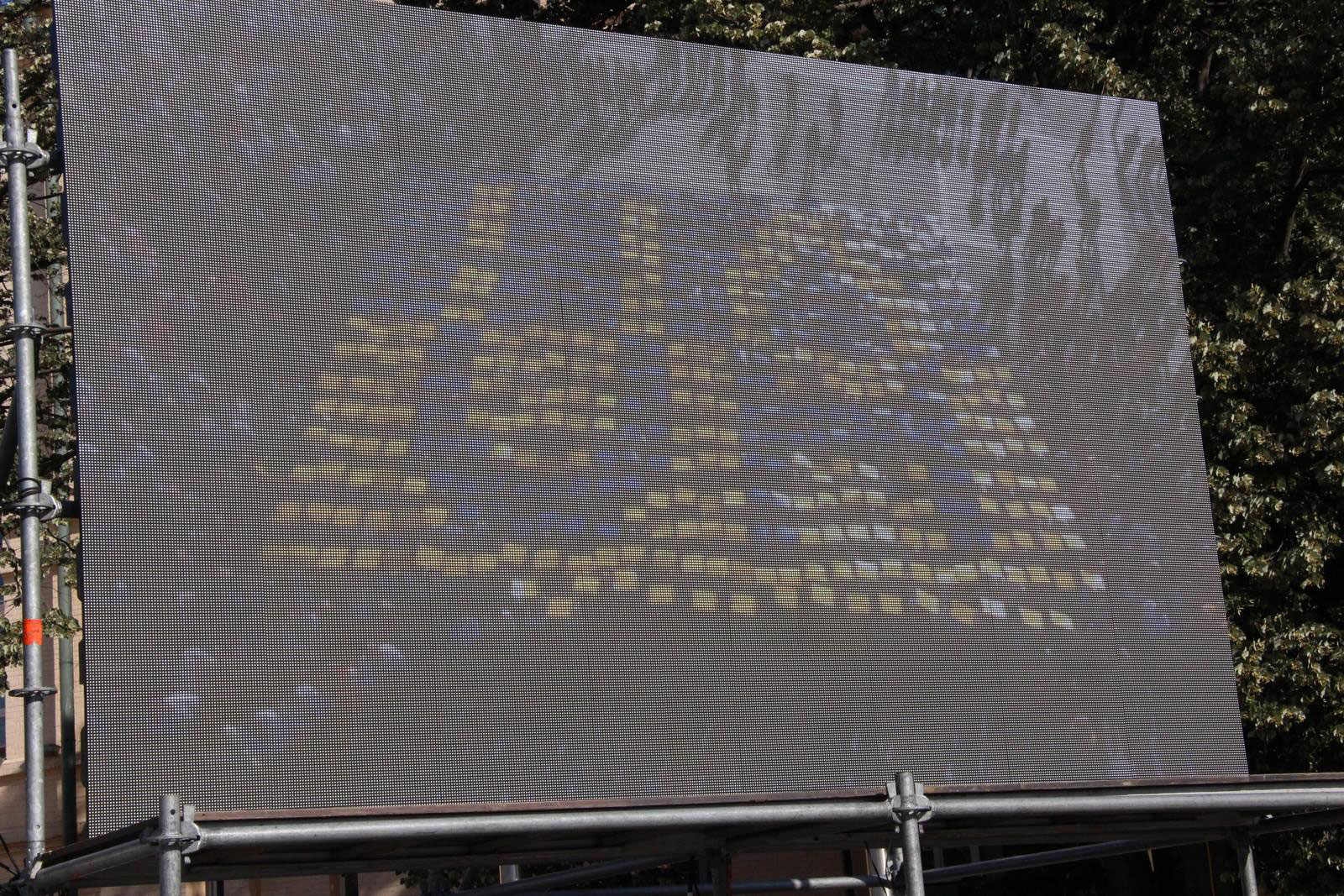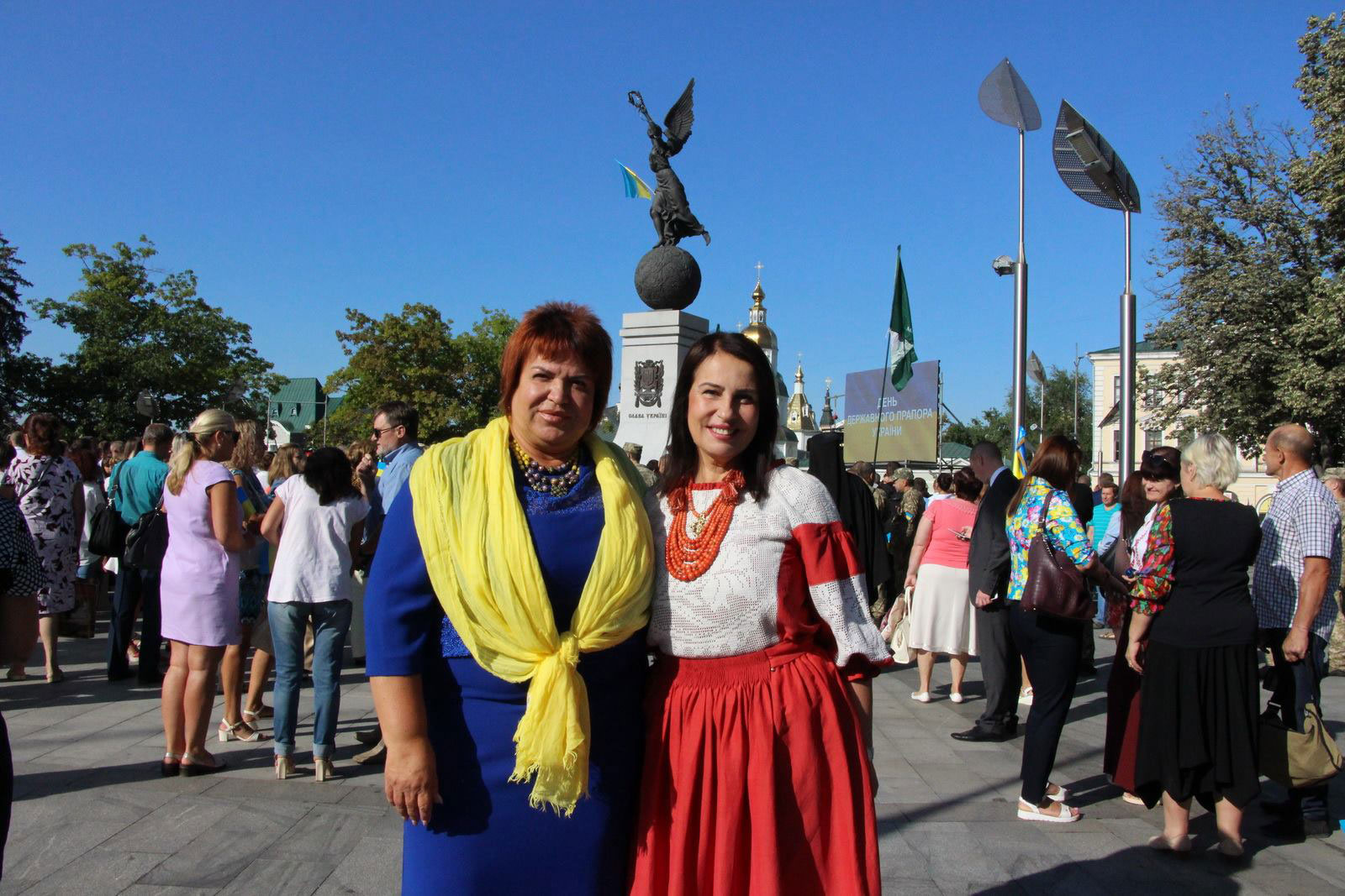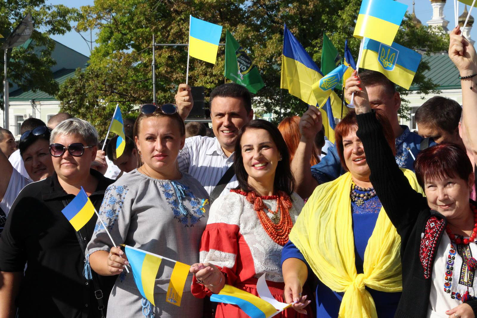 В честь праздника более 700 человек приняли участие во флэщмобе – они подняли вверх разноцветную бумагу и создали на фоне флага Украины сердце с буквами UA.