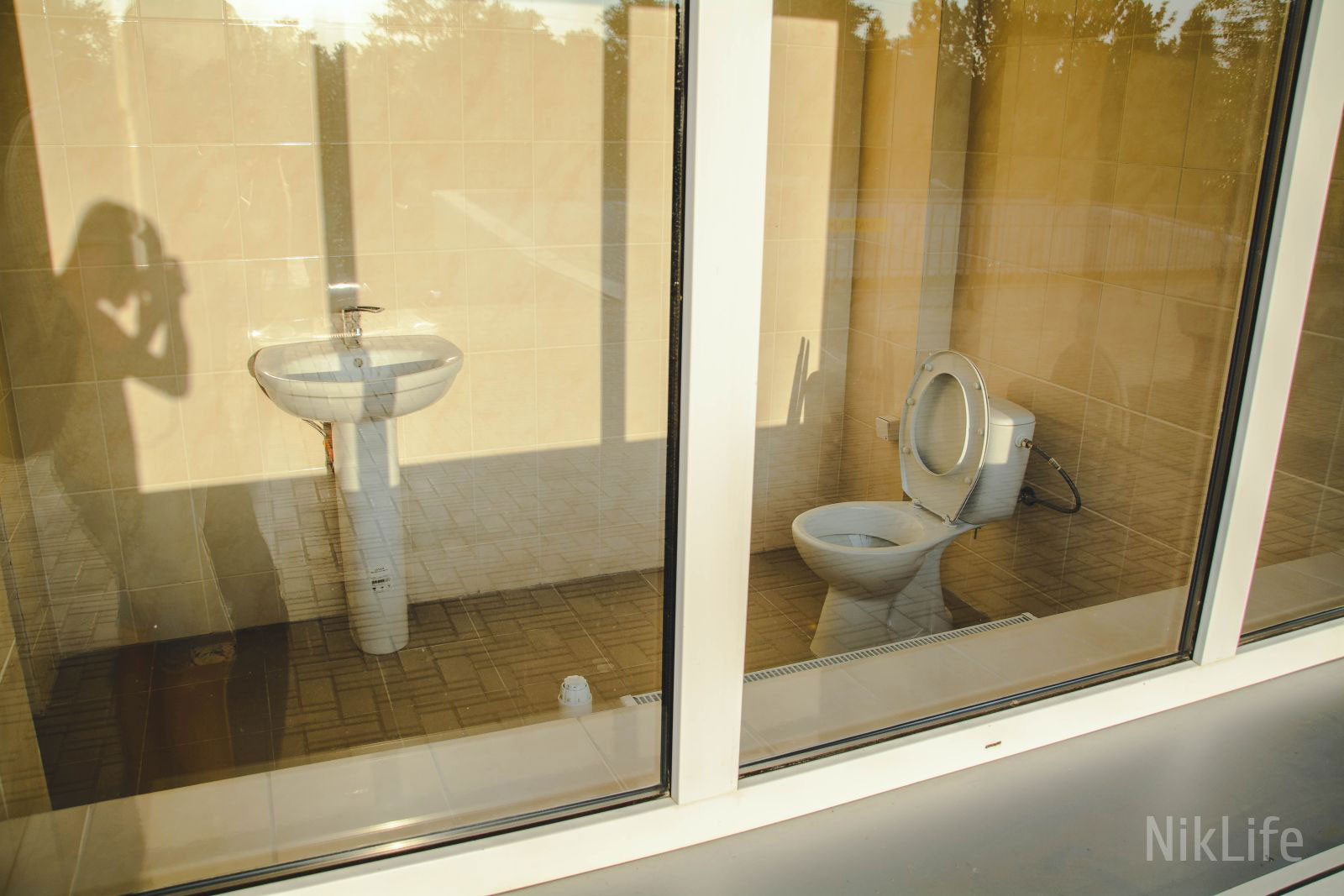 Все бы ничего, но в туалете нет стен, только прозрачное стекло.