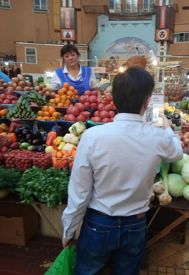 В торговой точке, где продаются овощи, будет установлена табличка с единым QR-кодом, который покупатель может отсканировать, используя криптовалютный кошелек на смартфоне. Продавец при оплате будет получать уведомление о переводе средств в гривнах.