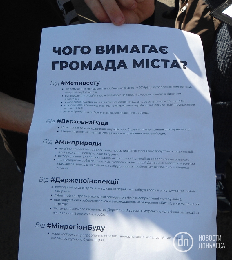 В ходе акции собирали подписи под обращением к компании "Метинвест", Верховной Раде, Минприроды, Госэконинспекции и Минрегионстроительства.