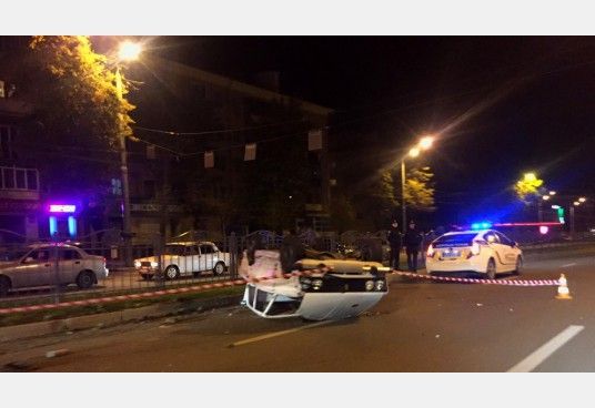 Сегодня около 00-10 в Харькове на пересечении проспекта Науки с улицей Ляпунова столкнулись автомобили BMW 7 Series и ВАЗ 2106, который от удара лег на крышу.