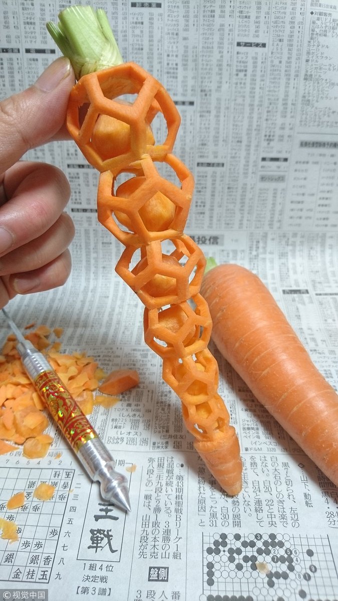 Японский шеф-повар Такехиро Кисимото последние пять лет занимается резьбой по …овощам и фруктам. Посмотрите на эти удивительно замысловатые узоры: