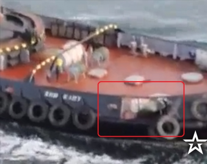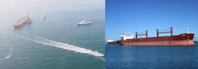 Вышеупомянутое видео телеканала "Звезда" также содержит еще одну полезную информацию. В первые несколько секунд видезаписи, в нескольких сотнях метров от одного из украинских бронекатеров, можно увидеть грузовой корабль, обозначенный как "Авиона".
