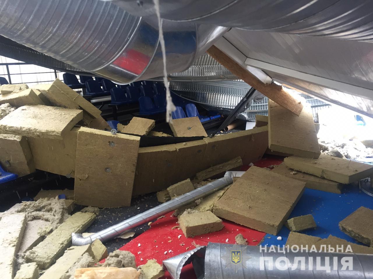 Как сообщают в отделе коммуникации полиции, крыша спортивной арены разрушилась во время тренировки, в зале находилось 30 детей. К счастью тренеры успели вывести детей из помещения. Никто не пострадал.